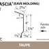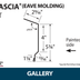 Eave molding trim is designed for buildings without an overhang. This metal roof eave trim creates a smooth transition from the roof to the fascia board, with gutters positioned in front of the trim for proper drainage.