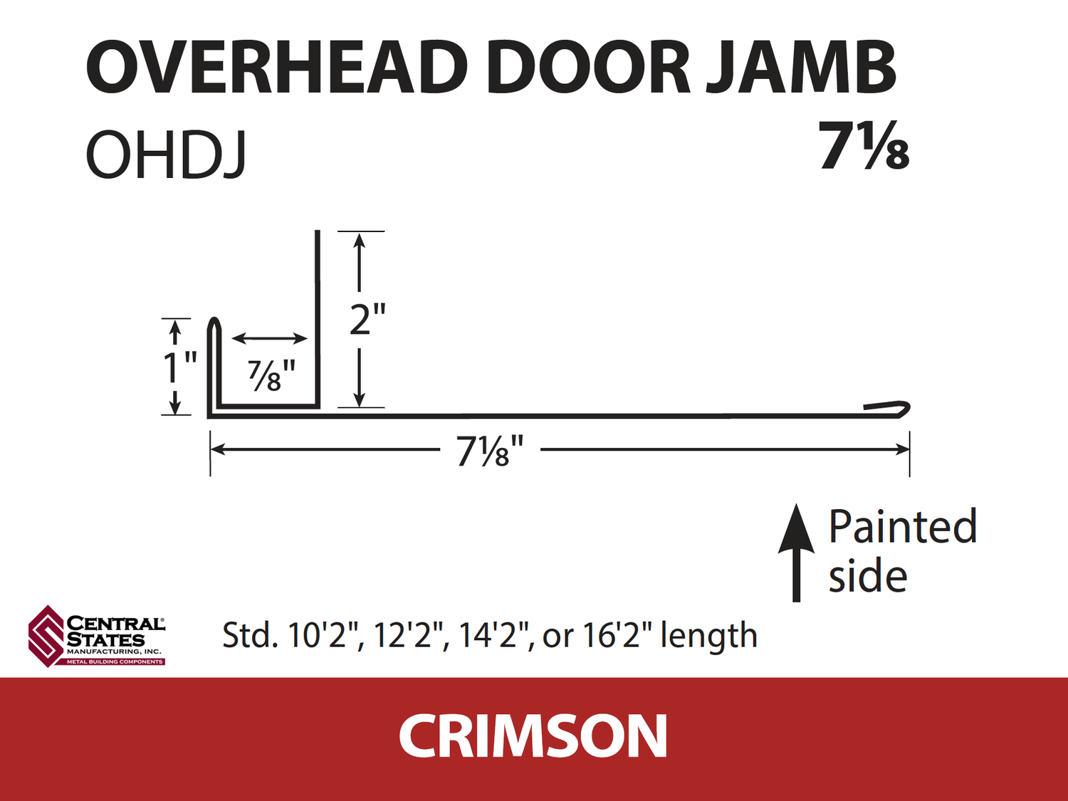 The overhead door trim is a one-piece metal building door trim designed with a wide face to cover 2×6 jamb boards and an integrated J-channel for a seamless fit. This door trim for metal buildings provides a polished, professional finish to your garage or workshop, closing in the opening with a clean and durable surface.