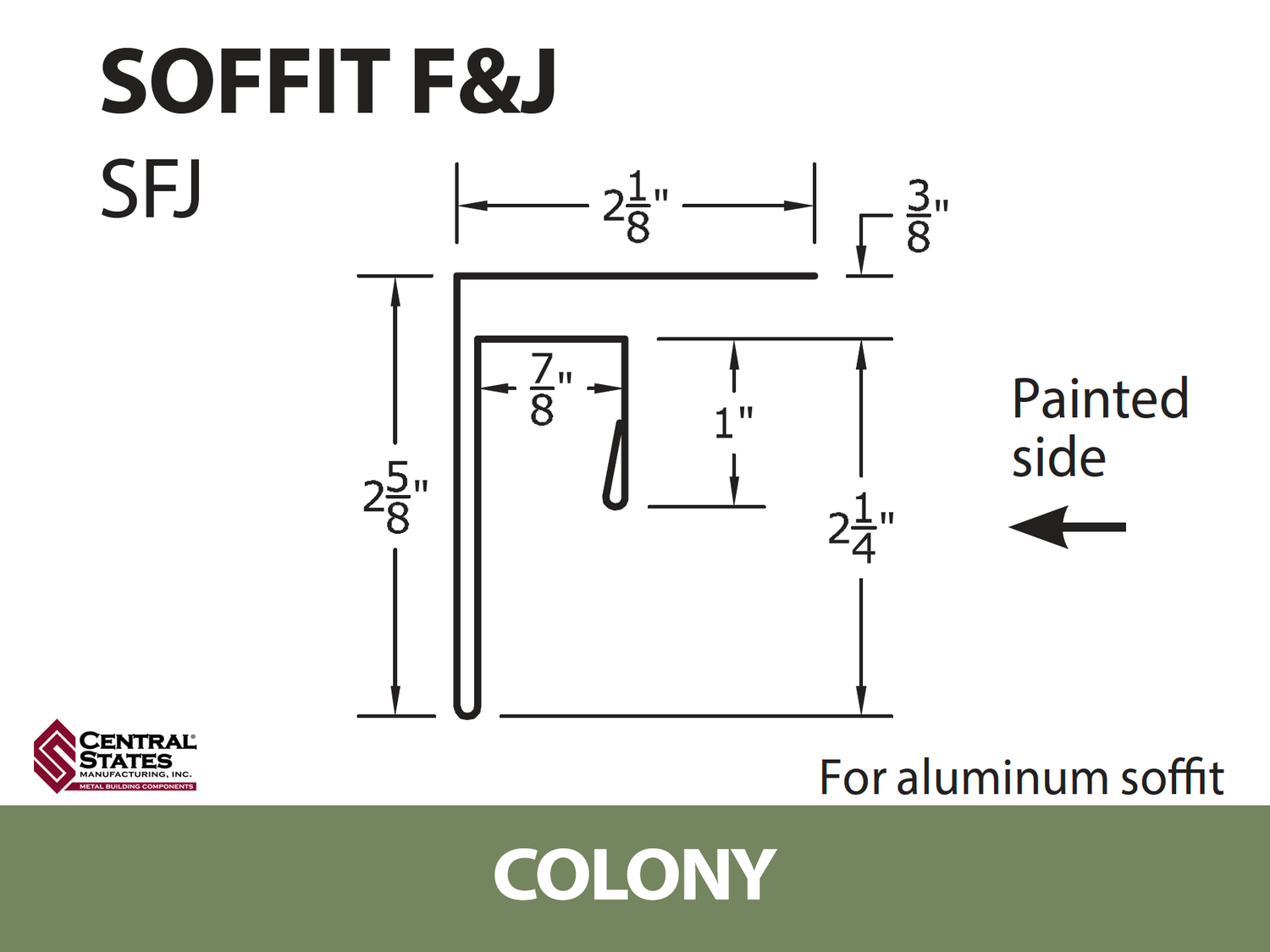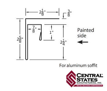 F&J trim is designed to connect sidewall metal panels with the soffit under an overhang. The soffit fits into one side of the trim, while the wall panel fits into the other, making this an ideal soffit j channel solution for clean, secure installation. This soffit j channel comes in the same colors as your metal panels and can also be custom-ordered in specific lengths. When used as a soffit j channel, it provides a seamless and durable finish for overhangs.