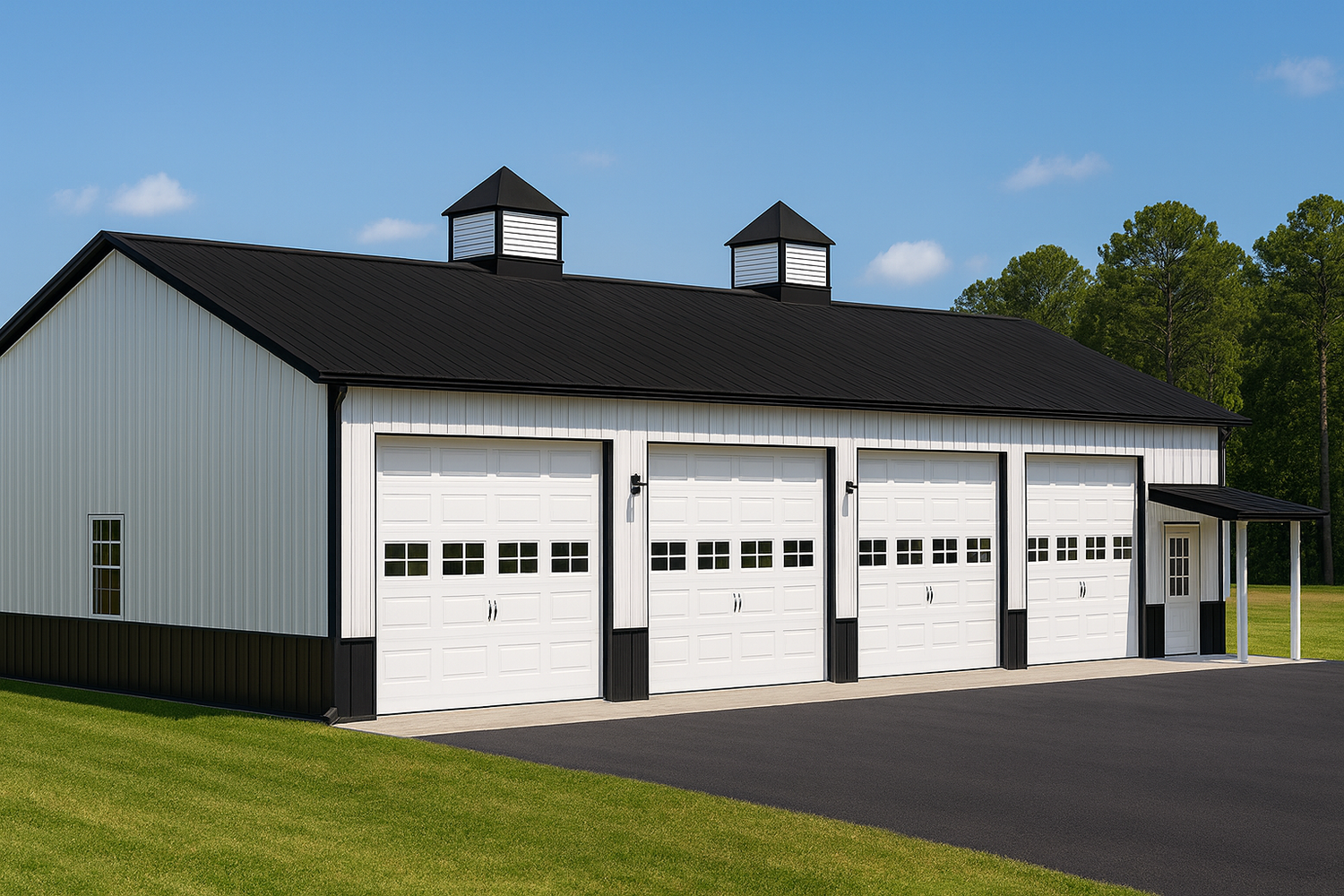 Full metal trim package: ridge cap, rake, drip edge, fascia, J-channel, overhead door trim, and more