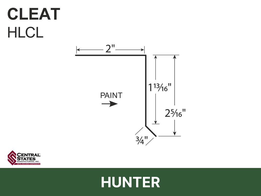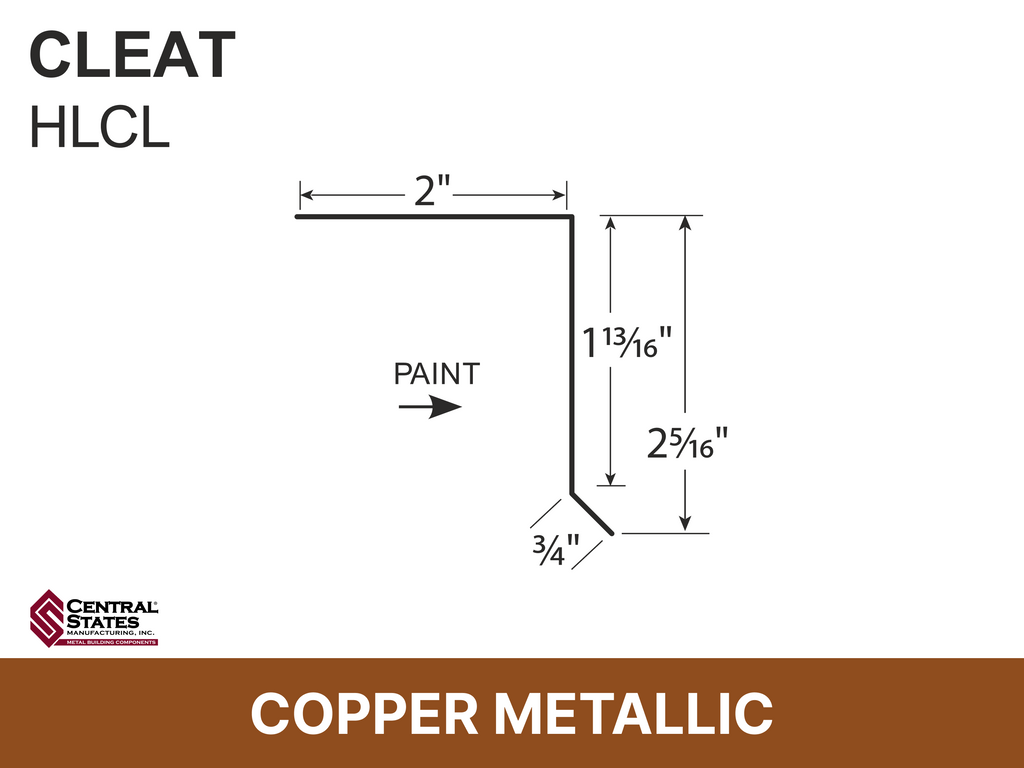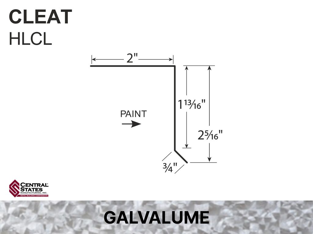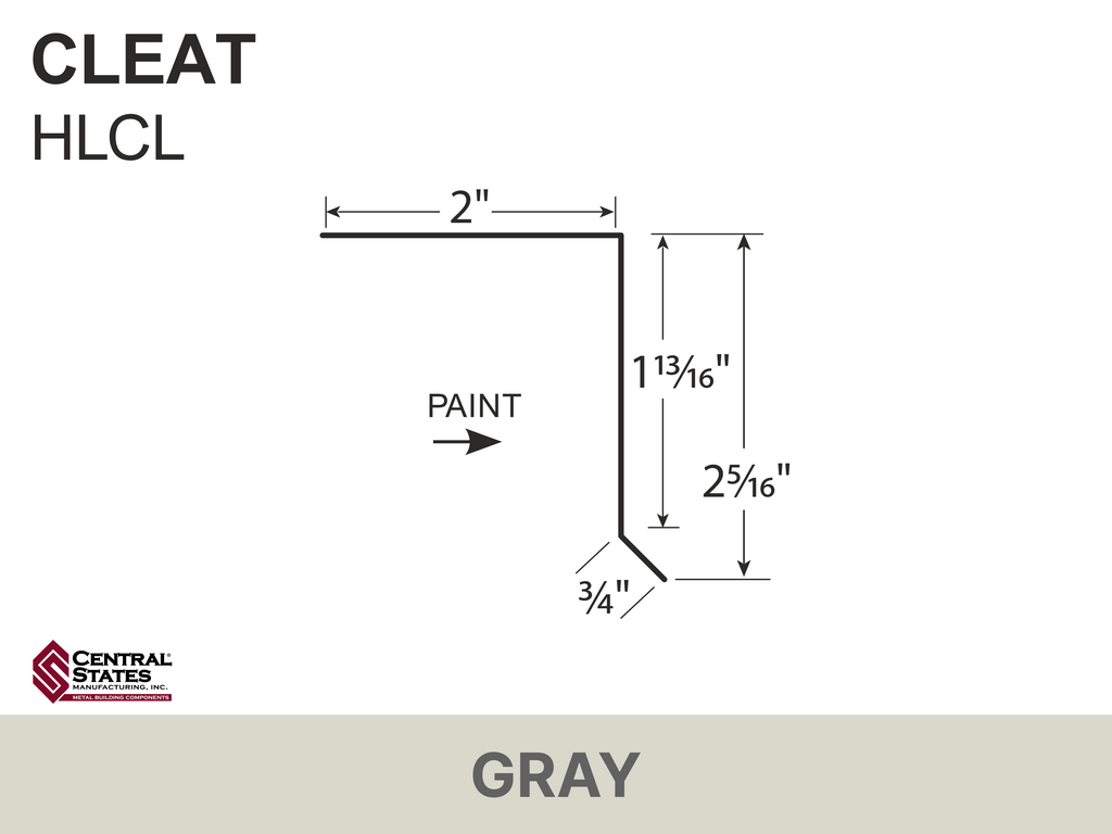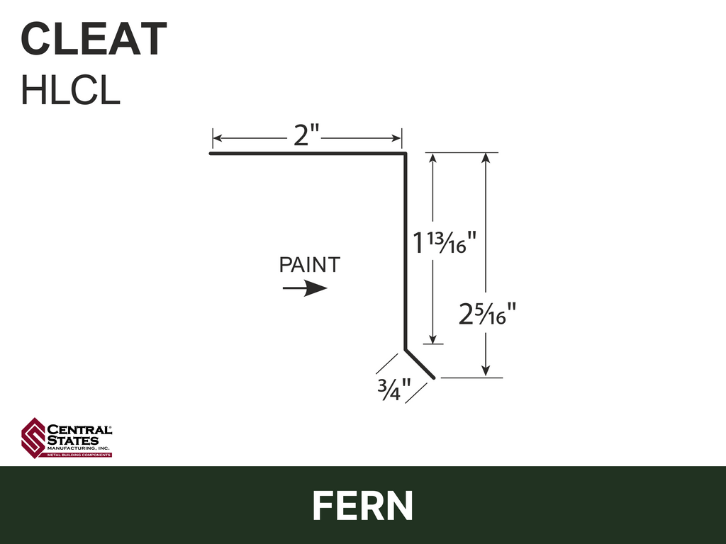 Manufactured from durable galvanized steel and matched to Central States H-Loc™ panel geometry, the cleat improves installation accuracy while reinforcing panel attachment at critical starting points.