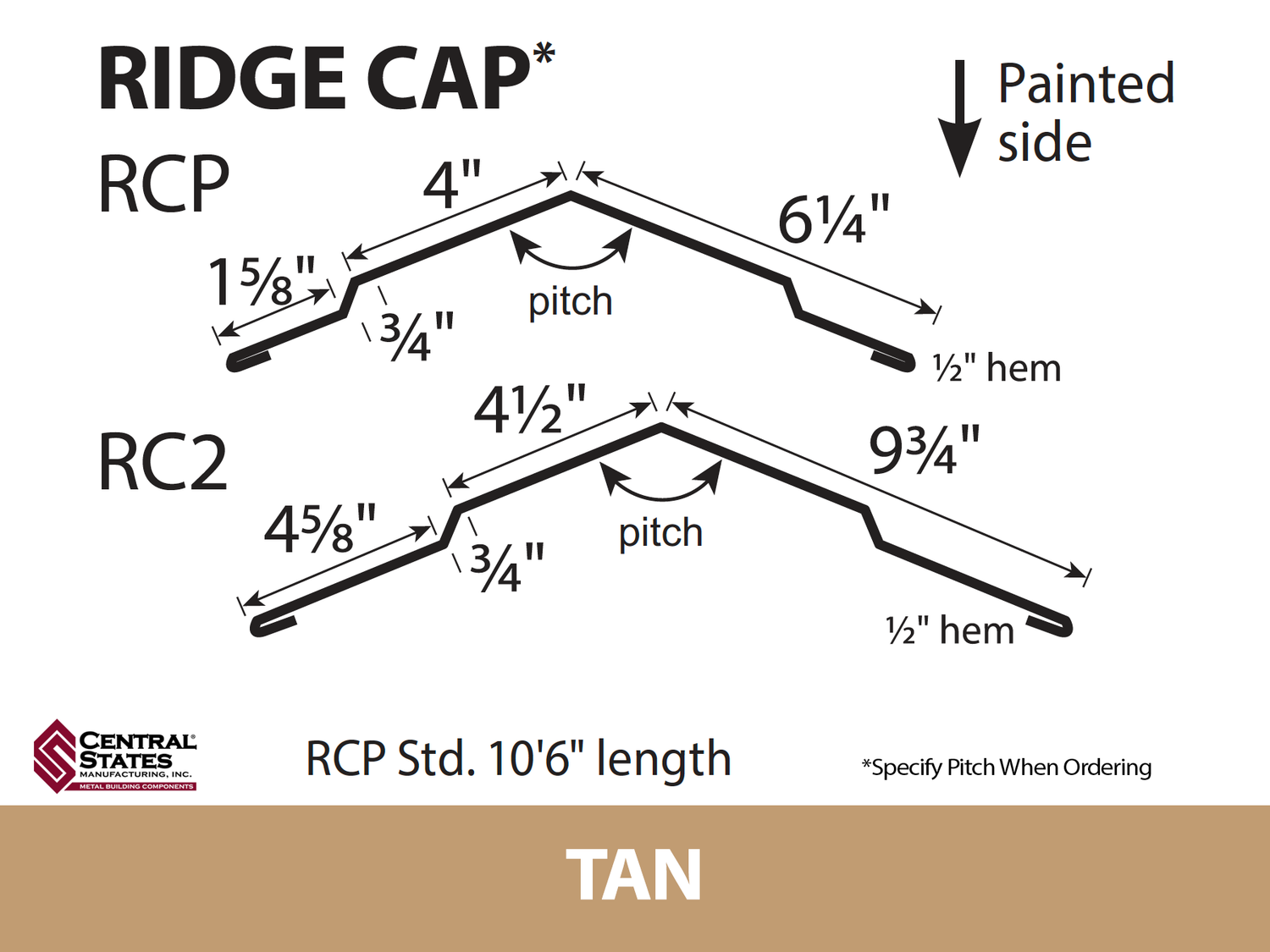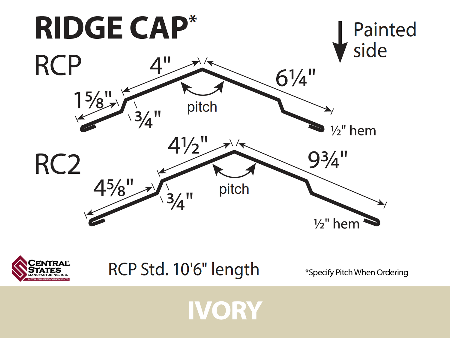 The Ridge Cap is designed to be used with most metal roofing panels. When paired with closure strips and sealant, the Ridge Cap reliably protects the ridge seam against water infiltration. Its peak top and crisp angles provide a clean, classic appearance for your roof.
