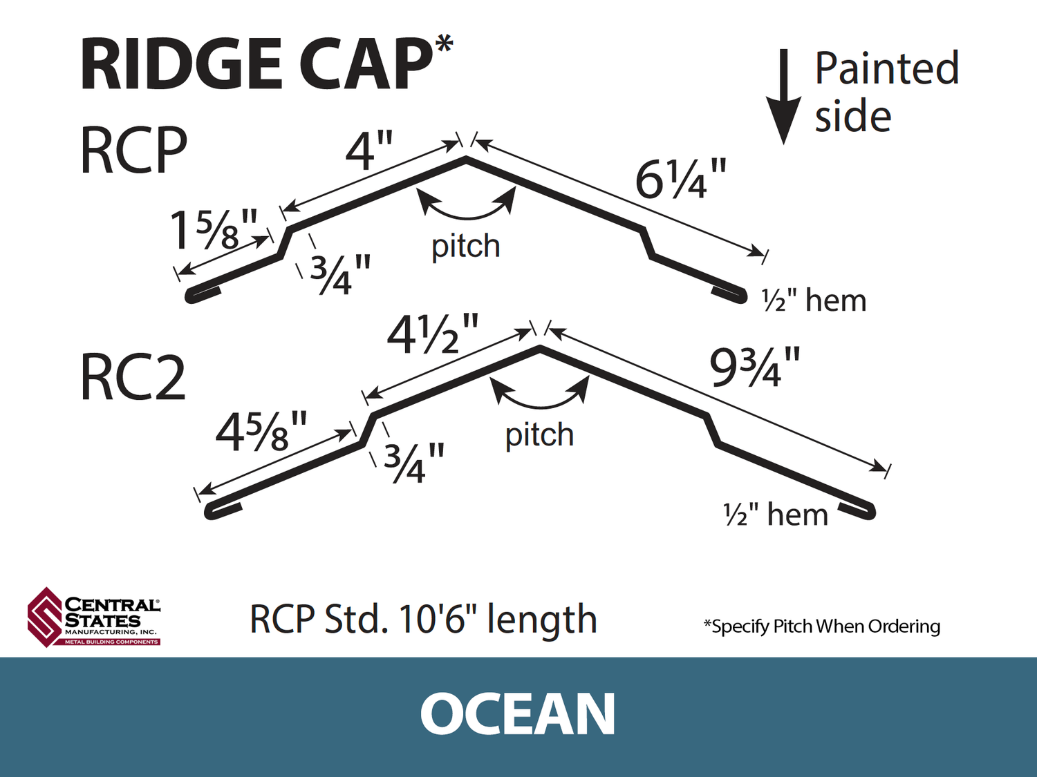 - Standard ridge dimensions: 12–14 in. wide with a 1 in. step on either side of the peak